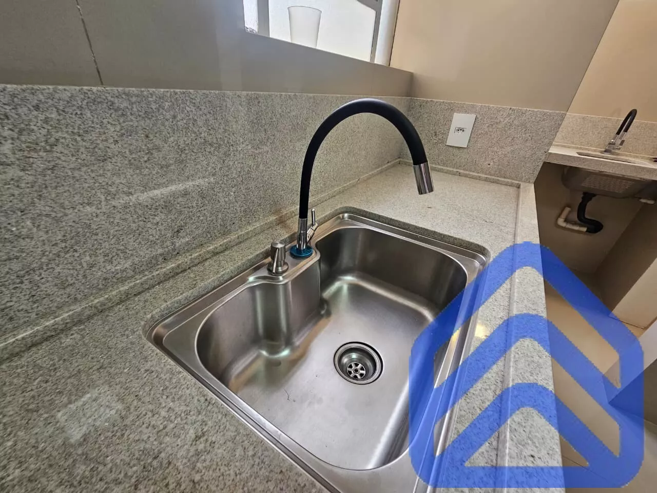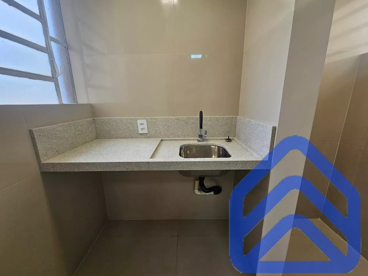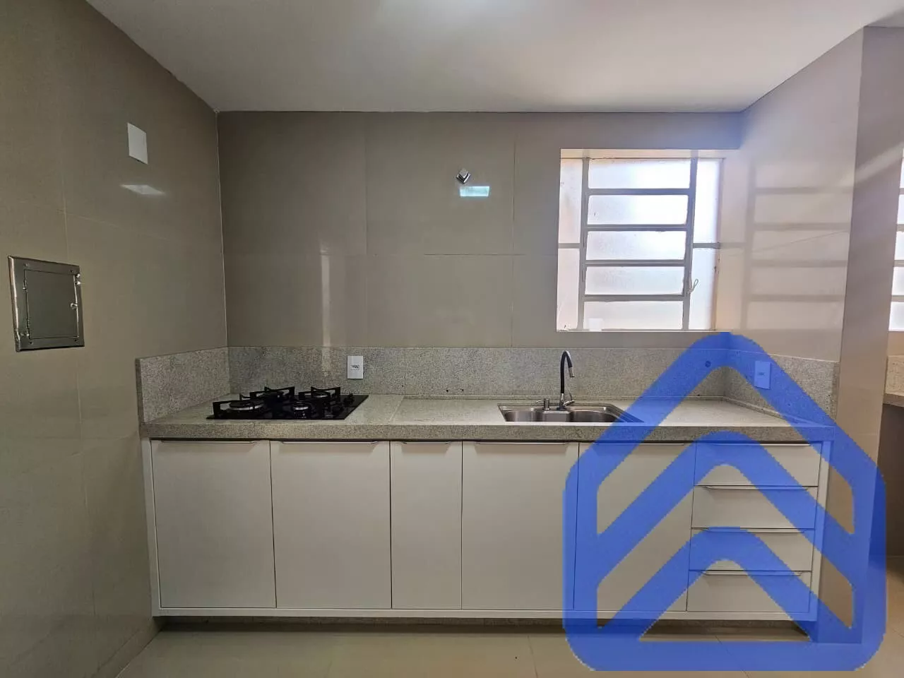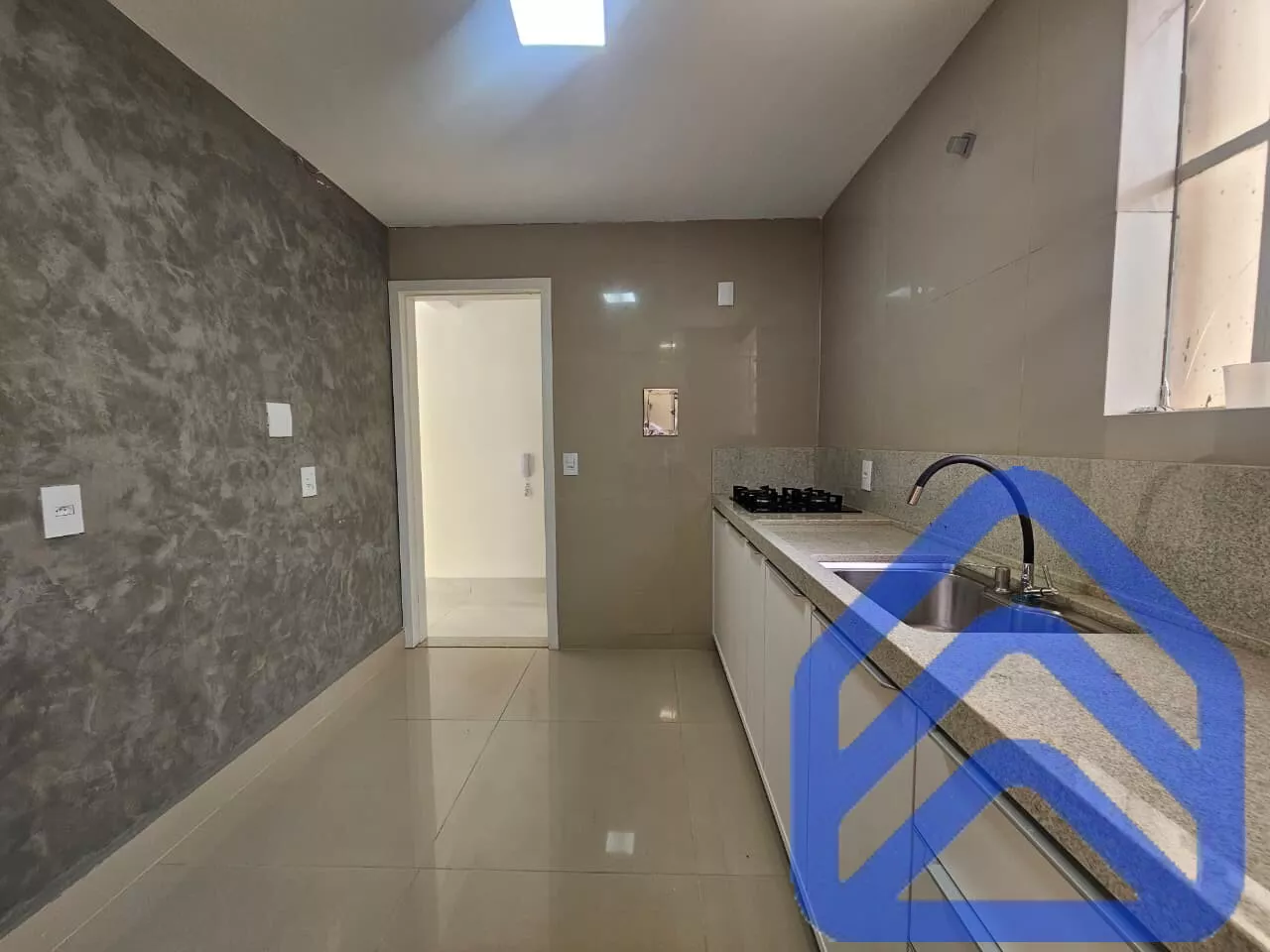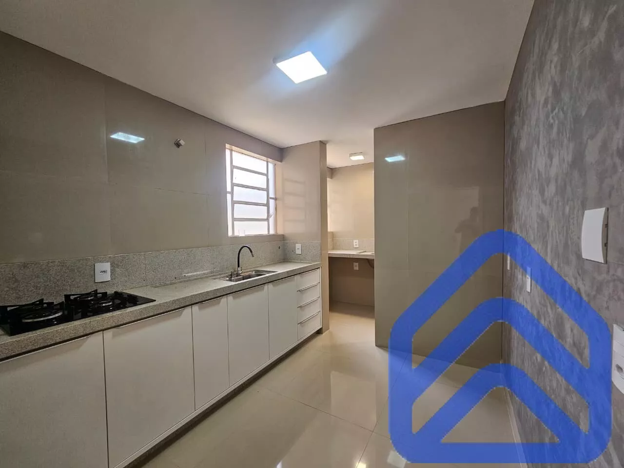 Cozinha funcional, com ótimo espaço para armários