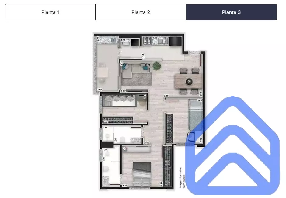 O Vila Bosque oferece três tipos de planta, com diferentes áreas privativas e vagas de garagem, adaptando-se ao seu estilo de vida: