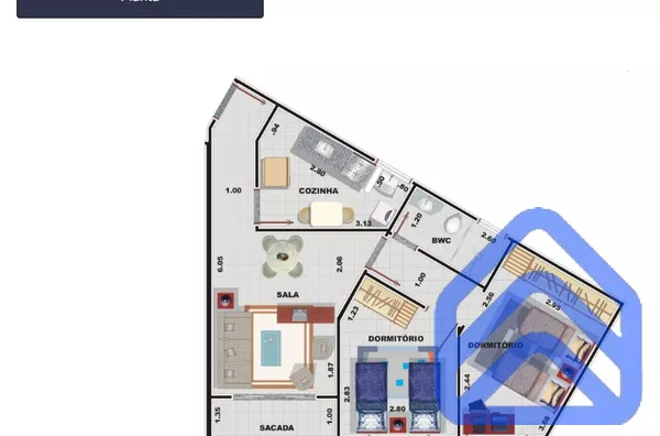 Apartamentos com 61,08 m², compostos por 2 dormitórios, sala com sacada, cozinha integrada à área de serviço, armários e balcão planejado, além de banheiro com balcão e box já instalados. Unidades bem distribuídas, com excelente aproveitamento de espaço e acabamentos de qualidade.