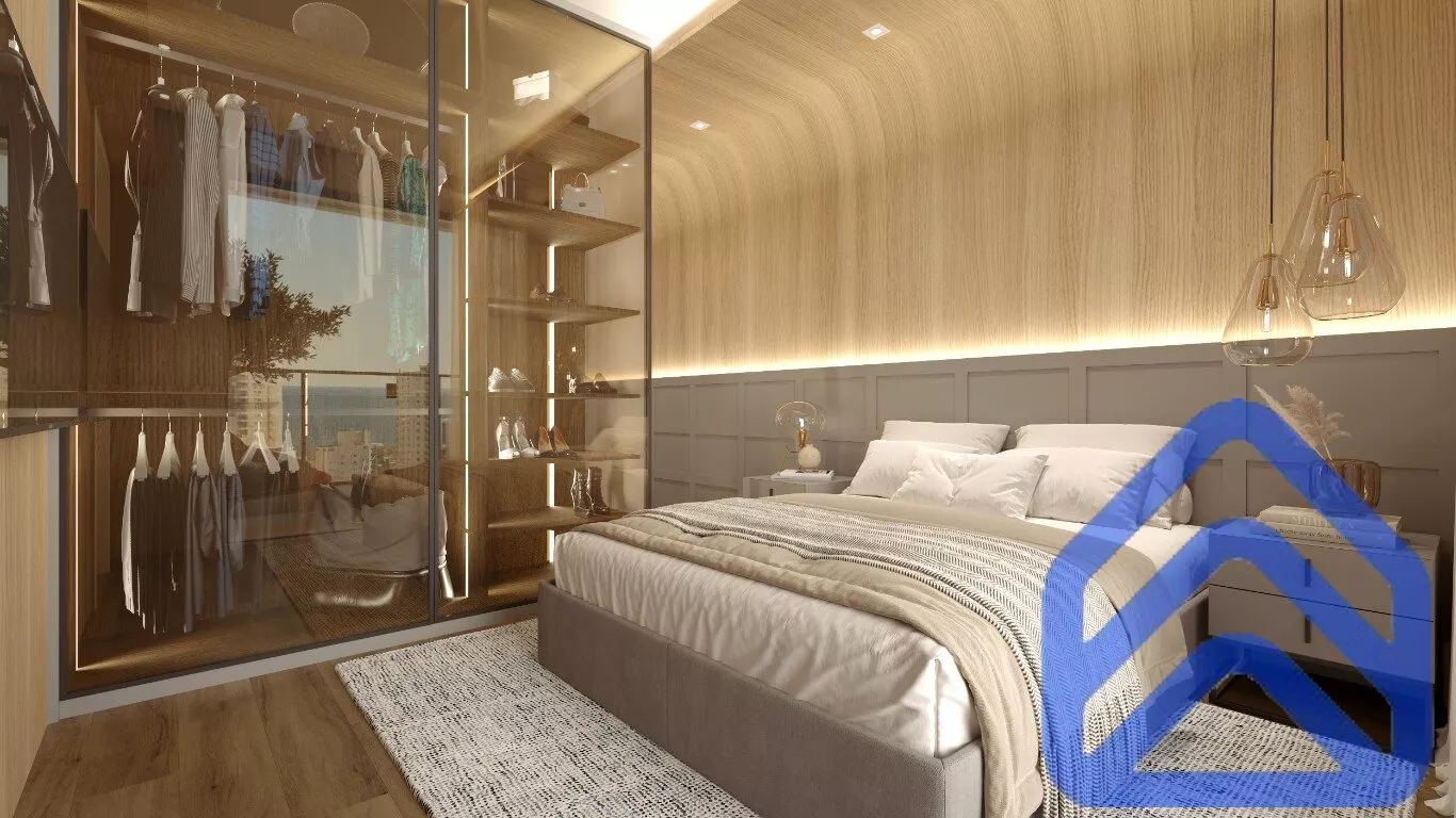 - Apartamento 02 (118,10m²): Living ainda mais amplo (43,60m²), suíte master de 13,5m², varanda charmosa de 10,75m² – conforto prático e inteligente.