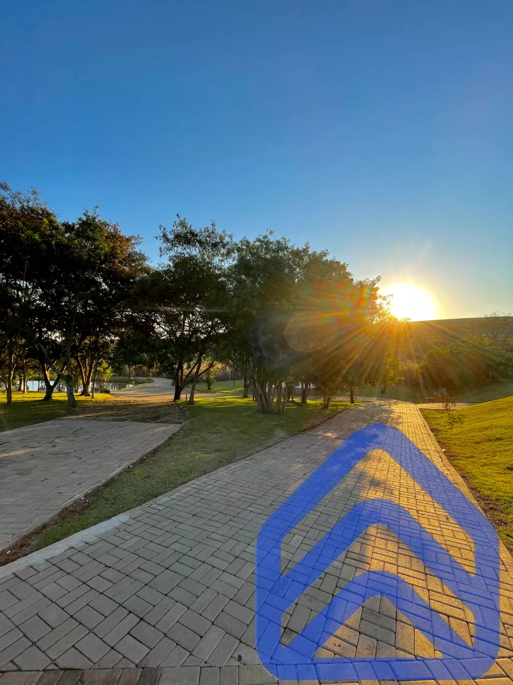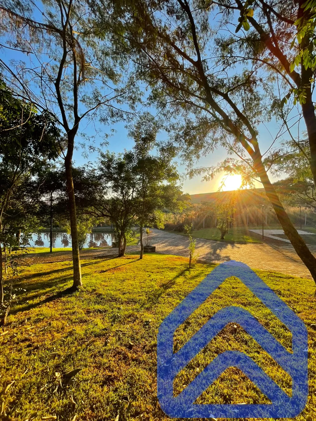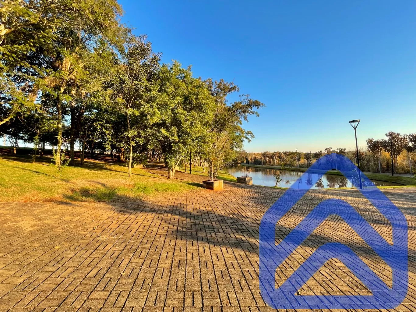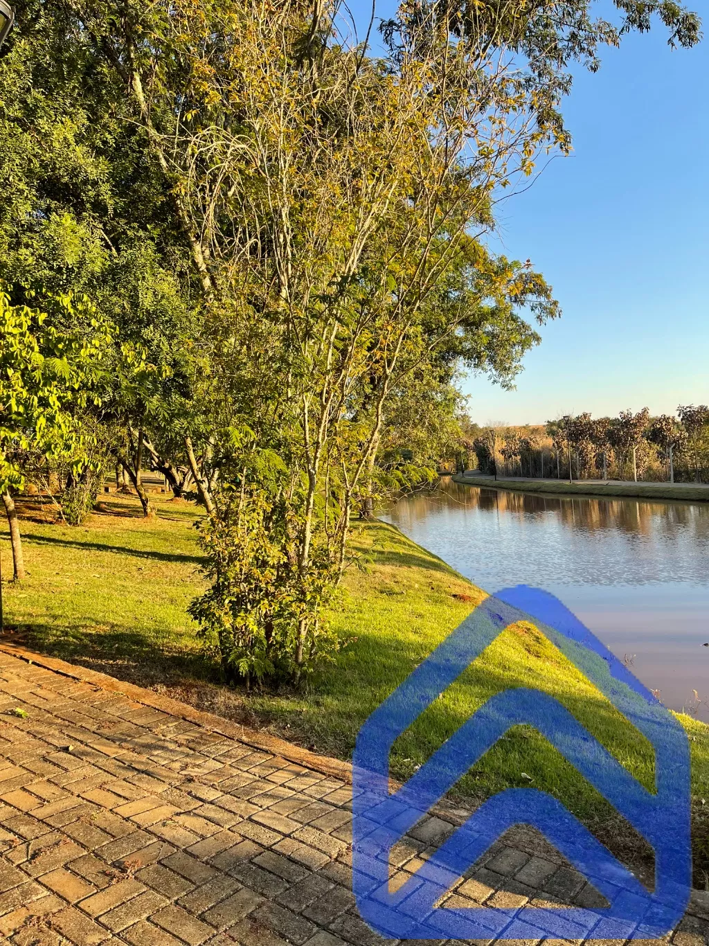 Lago com pista de caminhada ao lado;